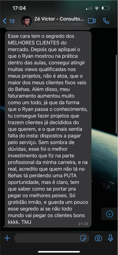 Eu comecei a atrair clientes todos os dias e fechar bons projetos. Atingi minha independência financeira e estabilidade profissional.